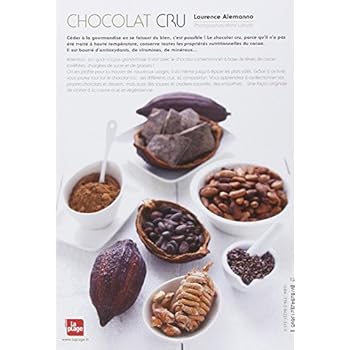 - Le chocolat cru = un super aliment Pour libérer ses arômes, le chocolat industriel (comme artisanal) est normalement torréfié à 140° C pendant au moins 35 minutes, ce qui tue une grande partie de ses fameux polyphénols et flavonoïdes protecteurs du système cardio-vasculaire. Le chocolat cru, c’est-à-dire non torréfié, est beaucoup plus riche en anti-oxydants ce qui en fait un aliment santé et toujours gourmand ! - Des recettes saines, crues, vegan et vitaminées. Laurence Alemanno nous enseigne une nouvelle façon de travailler le cacao et le chocolat. A partir d’une belle variété de matières premières (cacao frais, fèves de cacao, éclats de fèves, pâte, poudre ou beurre de cacao) elle propose de confectionner des boissons, des tablettes et bonbons maison selon les règles de la «vraie» chocolaterie, appliquées au cru. - Au sommaire : Tablette crue maison, Truffes, Pralinés, Barre chocolatée, Smoothie, Tortillas de maïs cacao, Chips de légumes épicées, Mousse au chocolat, Glace, Tarte...